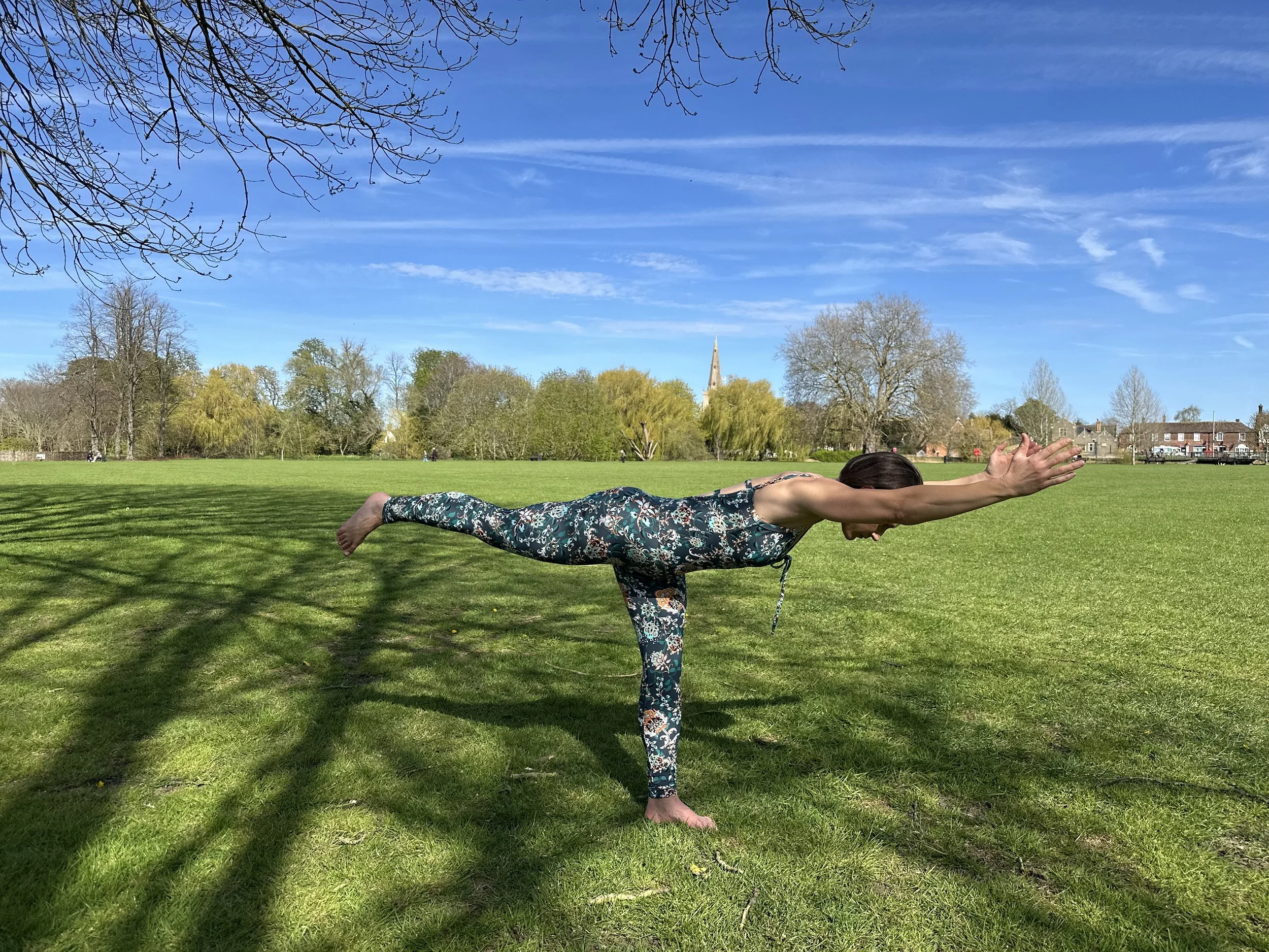 I choose to practise outdoors because I love beginning my day with a cup of tea and some movement in my garden. It helps to reset my body clock, which supports better sleep. Fresh air, natural light and open space let my body move more freely and my mind refocus on the day ahead. Outdoor practice also subtly challenges balance, stability and concentration, while being in nature lifts my mood and restores energy on a deeper level. There is a growing evidence base of the positive impact that “green health” has on health and wellbeing.